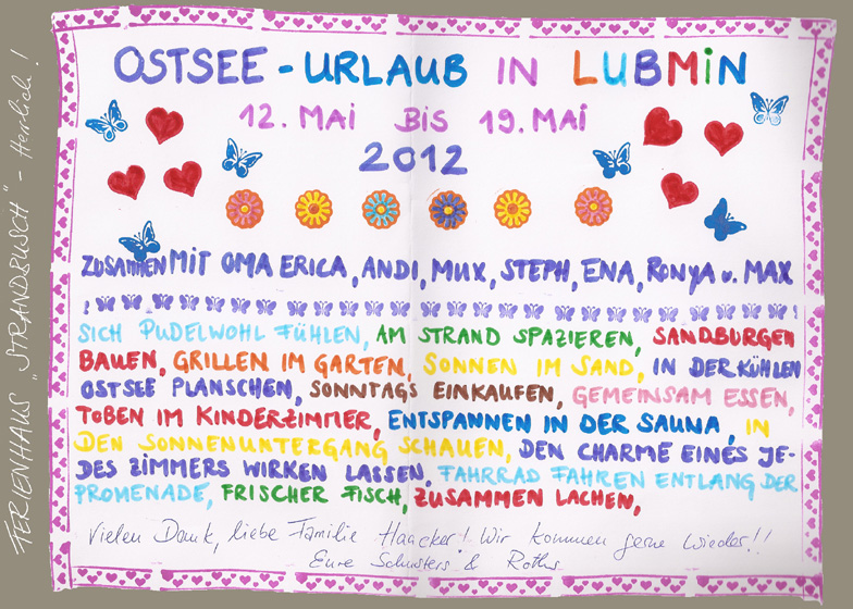ganz herzlich möchten wir und heute zum Abschied aus Lubmin und Ihrem